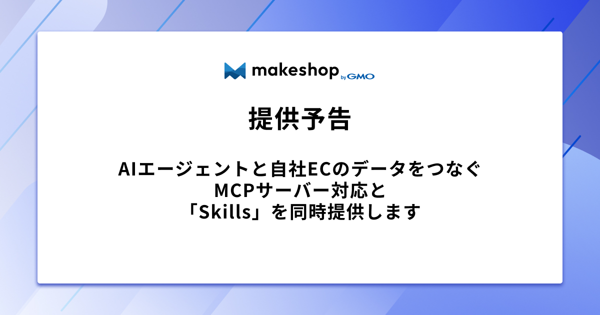このたび、GMOメイクショップでは「makeshop byGMO」とAIエージェントとの連携を可能にする「MCPサーバー対応」を、2026年4月末〜GW明けにリリース予定であることをお知らせします。